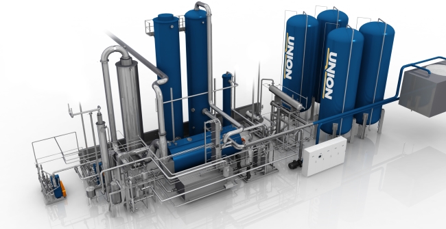 Установки производства CO2 (CBU) основаны на прямом сжигании различного углеводородного топлива : дизеля, мазута, керосина, природного газа и сжиженных углеводородных газов. Вне зависимости от типа топлива, используемого на установках производства СО2, все стадии процесса: сжигание, промывка, абсорбция, десорбция, адсорбция и разделение, гарантированно обеспечивают воспроизводство наивысшего качества готового продукта. Все генерационные установки производства Юнион Инжиниринг основаны на новейшей технологии аминоабсорбентных поглотителей, включающих NOxFlash и PUR-D узлы.