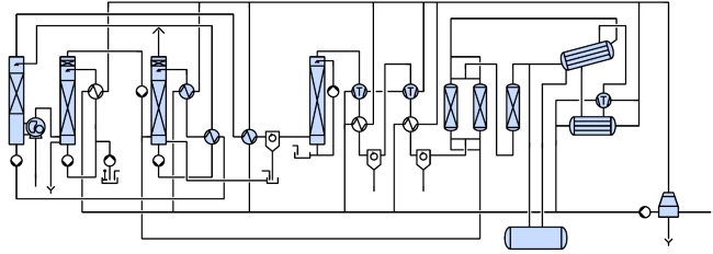 Для удаления балластных газов из CO2, последний поступает на очистку на дистилляционной колонне (тип PUR-D).